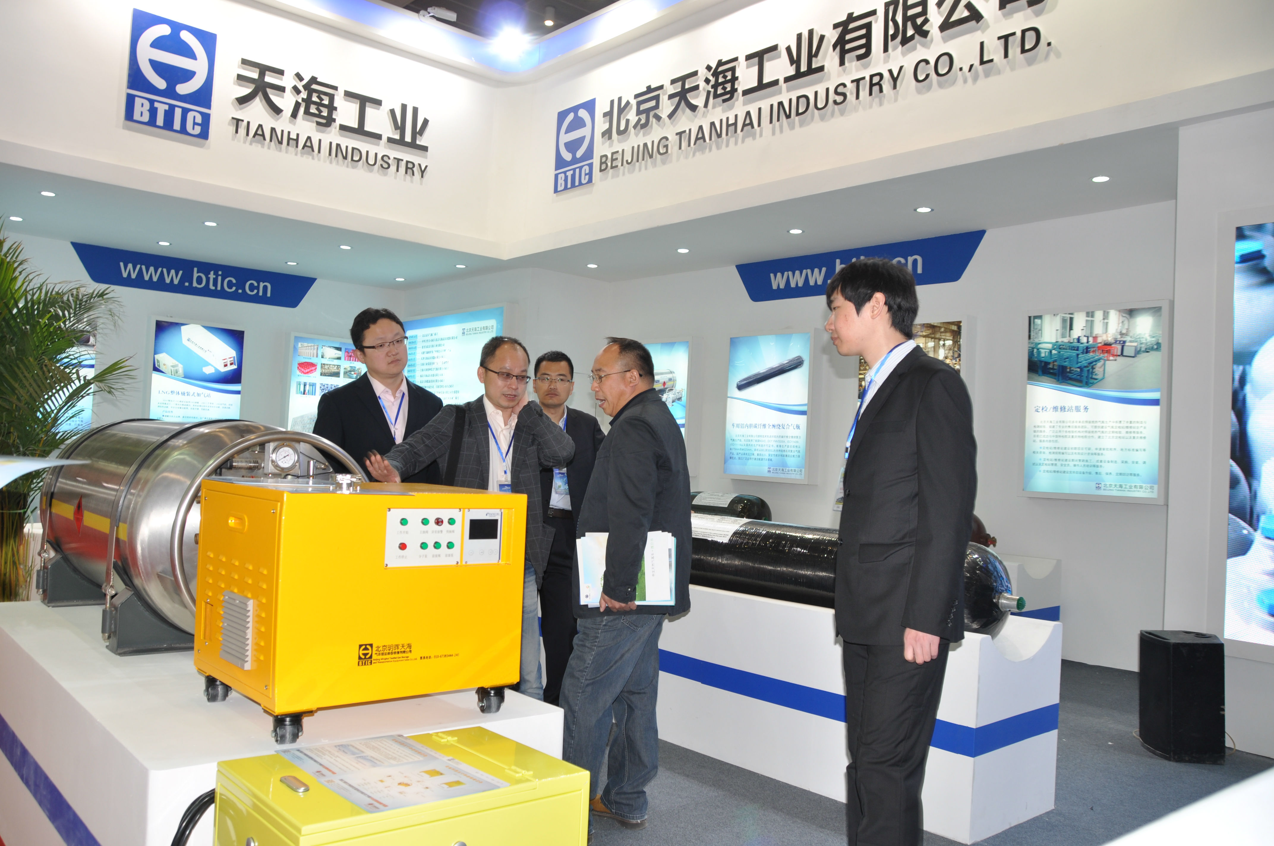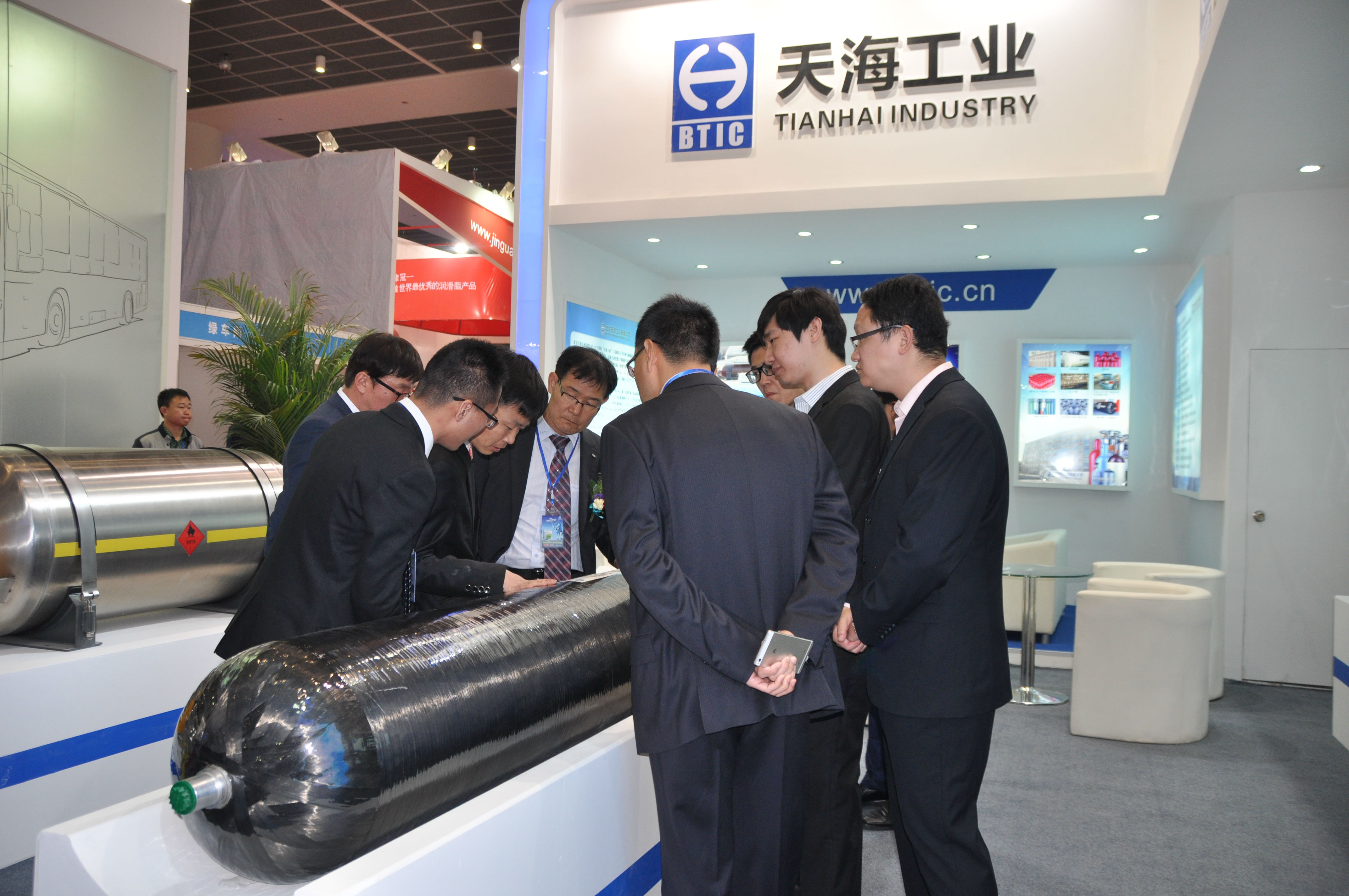 天海工業(yè)秉承高效、環(huán)保、節(jié)能的理念,致力于推動清潔能源汽車燃料系統(tǒng)的發(fā)展,提供天然氣儲運領(lǐng)域全套解決方案。此次展會,不僅展出了公司全新研制的車用鋁內(nèi)膽碳纖維全纏繞復(fù)合氣瓶(CNG-3型瓶)、還有具有國內(nèi)先進(jìn)技術(shù)的車用SI型LNG氣瓶、更有可為客戶提供全面的LNG氣瓶定檢站/維修服務(wù)站解決方案,吸引了天津公交、濟(jì)南公交、中通客車、青年客車等眾多客戶及廠商前來溝通洽談。天海工業(yè)豐富的產(chǎn)品種類和優(yōu)質(zhì)的服務(wù)得到客戶的廣泛認(rèn)可,體現(xiàn)了天海工業(yè)在天然氣產(chǎn)業(yè)鏈中豐富的裝備制造能力以及強大的品牌影響力。