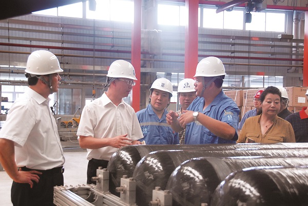 8月15日,西藏拉薩市黨組副書記、副市長暴劍一行到我司參觀考察。暴劍副市長一行參觀了醫(yī)用氧氣呼吸器展品和鋁內(nèi)膽全纏繞復(fù)合氣瓶加工車間,充分了解了產(chǎn)品的性能、參數(shù)和加工生產(chǎn)過程,對產(chǎn)品的輕質(zhì)、高壓、外觀等先進特性和生產(chǎn)現(xiàn)場規(guī)范化管理、生產(chǎn)設(shè)備先進性及產(chǎn)品加工質(zhì)量給予高度評價,并明確表達(dá)了合作意向,同時邀請控股公司盡快組織相關(guān)人員赴西藏對項目進行考察??毓晒究偨?jīng)理王國華也明確表示,希望天海公司和拉薩市相關(guān)企業(yè)充分利用各自的資源和優(yōu)勢,合作共贏,為將來提高西藏地區(qū)的旅游業(yè)服務(wù)水平,改善藏區(qū)人民的生活水平共同努力,為藏區(qū)人民謀福祉,為首都人民爭榮耀。