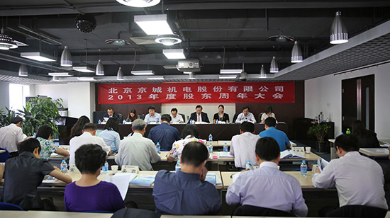 6月26日,北京京城機電股份有限公司(以下簡稱“公司”)2013年度股東周年大會在京城機電大廈18層第一會議室隆重召開。會議審議通過公司2013年年度報告、董事會和監(jiān)事會2013年年度工作報告、選舉第八屆董事會成員和第八屆監(jiān)事會成員等19個議案。會議由公司副董事長王平生先生主持,公司部分股東、股東代表、董事、監(jiān)事、高級管理人員和各中介機構(gòu)負(fù)責(zé)人及相關(guān)人員出席了會議。